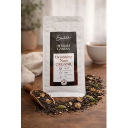 - Organiczna czarna herbata o korzenno-owocowym aromacie - bogata i nastrojowa kompozycja smakowa